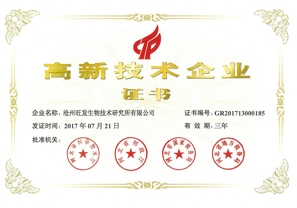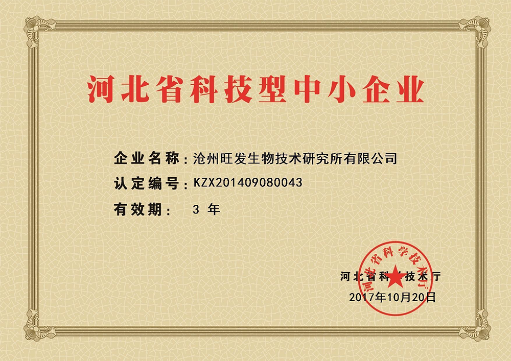 滄州旺發(fā)生物技術(shù)研究所有限公司創(chuàng)立于1993年,是集研發(fā)、生產(chǎn)、銷售于一體的微生態(tài)制劑生產(chǎn)“高新技術(shù)企業(yè)”、“國家知識產(chǎn)權(quán)優(yōu)勢企業(yè)”、“河北省農(nóng)業(yè)產(chǎn)業(yè)化重點(diǎn)龍頭企業(yè)”、“河北省創(chuàng)新型中小企業(yè)”、“河北省專精特新中小企業(yè)”,目前,公司注冊資金1360萬元,生產(chǎn)占地80畝,擁有液、固態(tài)結(jié)合全自動發(fā)酵生產(chǎn)線及標(biāo)準(zhǔn)化全自動液態(tài)發(fā)酵、噴霧干燥生產(chǎn)線。